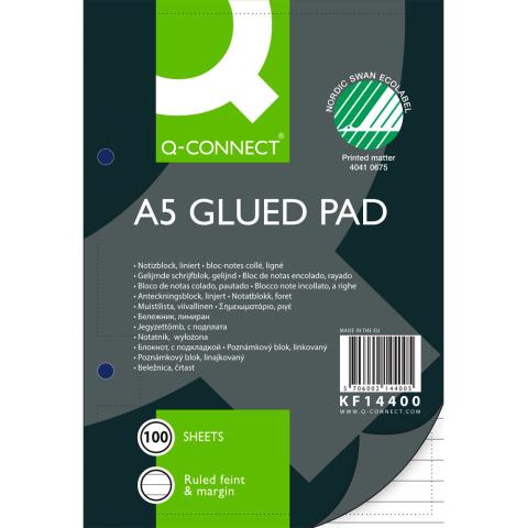 Q-connect standardblokke 60g A5 linjeret 2 huller